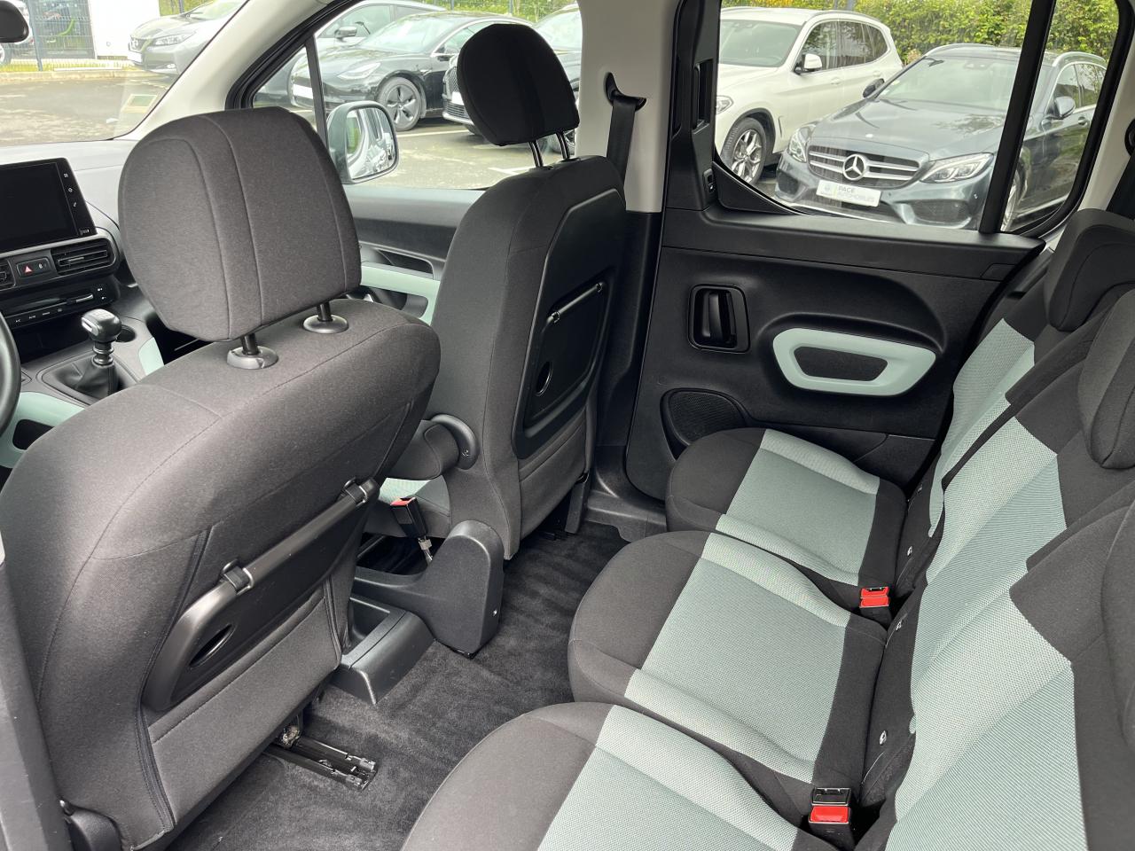 2 portes latérales coulissantes4 Haut-parleurs + 2 TweetersABS avec répartiteur électronique de freinage (REF) et aide au freinage d'urgence (AFU)Accoudoirs centraux AVActive Safety BrakeAffichage tête haute couleurAide au démarrage en penteAide au stationnement arrièreAirbags frontaux, latéraux AV et rideauxAirbump BlackAlerte Active de Franchissement Involontaire de Ligne (AAFIL)Alerte Risque Collision (ARC)Allumage automatique des pharesBarres de toit longitudinales Noir BrillantBoîte à gant supérieure réfrigéréeCaméra de recul avec Top Rear VisionCITROËN Connect Box avec Pack SOS et assistance inclusCITROËN Connect NavCitroën Connect Radio sur tablette tactile 8"Climatisation automatique bizoneContrôle dynamique de stabilité (ESP) et antipatinage des roues (ASR)Détection de sous-gonflage indirecteDirection à assistance électriqueEssuie glace avant automatiqueFeux diurnes à LEDFixations ISOFIX sur les 3 sièges de la 2ème rangéeFrein de stationnement électriqueJantes alliage 17’’ SPIN DiamantéesKit de dépannage provisoire de pneumatiquesKit mains libres Bluetooth et prise USBLève-vitres avant et arrière (rang 2) électriques et séquentielsLunette arrière ouvrante et vitrages arrière surteintésMirror ScreenOrdinateur de bordPack Color White : décors d’Airbump et de projecteurs antibrouillard colorésPack Safety PlusProjecteurs antibrouillard avantRégulateur et limiteur de vitesseRétroviseur intérieur électrochromeRétroviseurs extérieurs rabattables électriquementRadio Numérique DABSellerie Tissu Mica GreenSiège conducteur avec réglage en hauteurSiège conducteur avec réglage lombaireSiège passager avant escamotableVolant croûte de cuirVolant réglable en hauteur et en profondeur