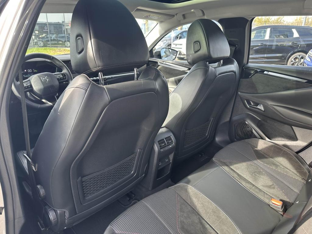 2 Prises USB C à l'arrièreAérateurs aux places arrièresAide au démarrage en côteAirbag central entre les sièges avantAirbags frontaux aux places avant, avec désactivation par clé de l'airbag passagerAirbags rideaux aux places avant et arrièreAllumage automatique des projecteursAntenne de toit « aileron de requin »Avertisseur de risque de collisionCâble de recharge mode 2 standard 1,8kW (10A)Cabochons de roue noir brillantCapot avant actifChargeur embarqué 7,4kWClimatisation automatique bi-zone, avec fonction REST, 3 modes de débit d'airCombiné instrumentation numérique 7"Condamnation automatique des portes et du coffre en roulantConsole centrale avec compartiment de rangement ferméContrôle de stabilité de l'attelageContrôle dynamique de stabilité (ESP) avec antipatinage des roues (ASR)DS E-TOGGLEEclairage à LED au niveau des piedsEclairage d'ambiance à LED personnalisableEclairage du coffre à LEDEnjoliveurs de custode Noir BrillantEssuie-glace à déclenchement automatiqueFixations Isofix pour siège passager avant et places latérales arrièreFrein multi-collisionGrille de calandre noir brillantJantes alliage 17'' ATHENESJonc sur volet chroméLécheurs de vitres latérales noir brillantLunette arrière chauffanteMonogramme DS chromé sur l'enjoliveur de custode latéral noir brillantMonogramme extérieur Chrome sur le capotPalettes au volantPare-brise teinté et acoustiquePare-soleil avec miroirs de courtoisie occultables éclairés à LEDPeinture Rouge VelvetPoignées de portes affleurantes ChroméesPrise 12V à l'avant et dans le coffrePrise USB type C dans le rangement de la console centraleProjecteurs avant LEDRégulateur et limiteur de vitesseRétroviseurs extérieurs électriques, dégivrants et rabattables électriquementRadio NumériqueReconnaissance des panneaux de vitesse et préconisationVérins d'ouverture et de maintien du capot moteur