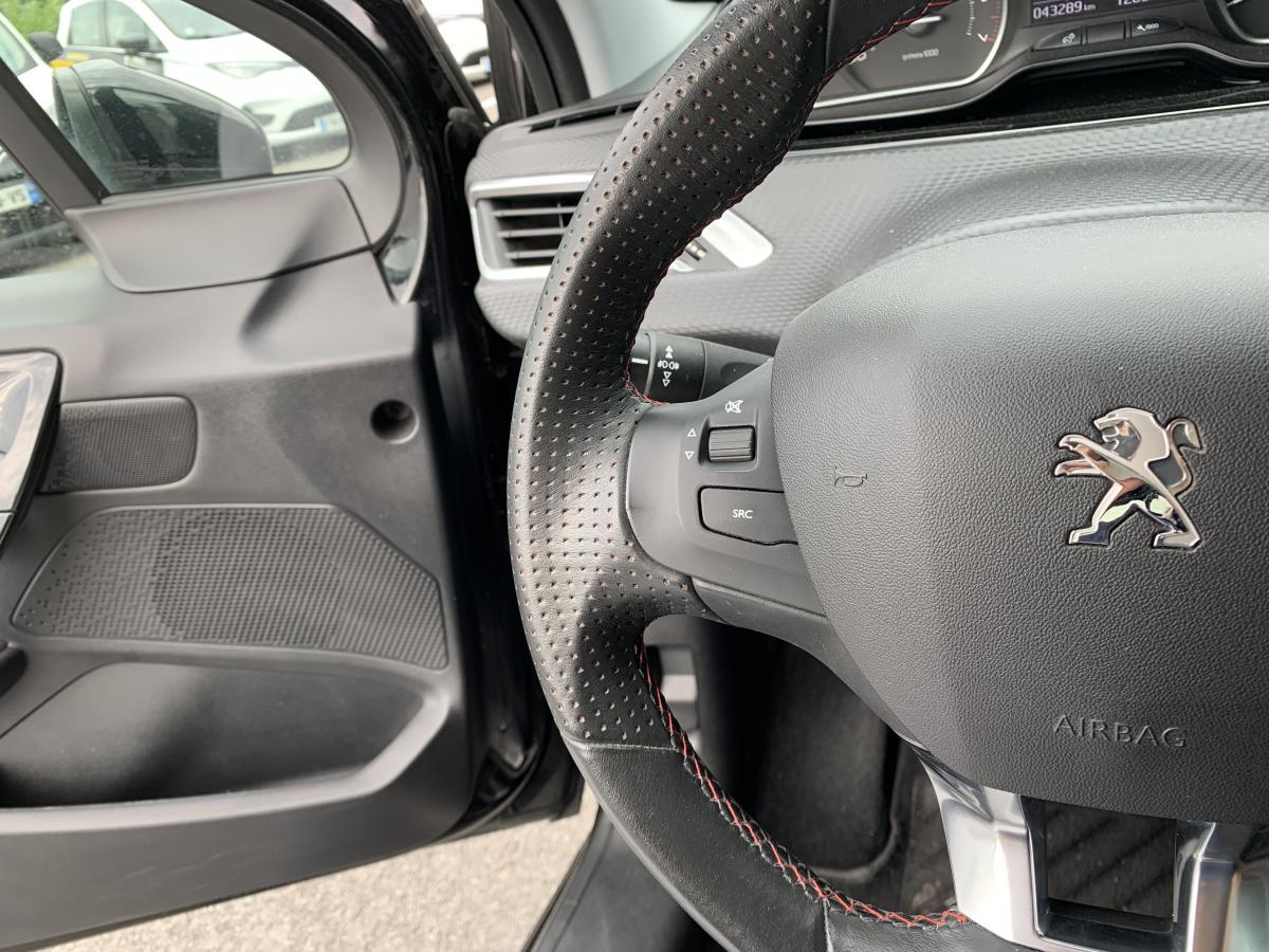 ABS (Antiblocage de roues)Aide au stationnement arrièreAir conditionné automatique bizone avec filtre pollen / charbons actifsAirbags frontaux (passager déconnectable), latéraux et rideauxBecquet de hayon couleur carrosserieContrôle dynamique de stabilité (ESP) et antipatinage des roues (ASR)Direction électrique à assistance variableDossier de banquette arrière rabattable et fractionnable 1/3-2/3Jantes alu 17'' Sport Caesium diamantéesKit mains libres bluetooth avec fonction streaming audioLécheurs de vitres chromésMonogrammes GT LinePédalier sport en aluminiumPack VisibilitéPeugeot Connect : Navigation 3D connectée avec reconnaissance vocale + PEUGEOT Connect SOS & AssistancePEUGEOT i-Cockpit : Poste de pilotage innovant associant combiné tête haute, volant compact et grand écran tactilePoignée de frein à main cuirPrise 12V sur façade techniqueProjecteurs antibrouillard AV avec fonction "Cornering"Projecteurs antibrouillard avec enjoliveurs chromésProjecteurs halogène bi-tons noir/ chrome avec signature lumineuse et feux diurnes à LedRégulateur et limiteur de vitesseRétroviseurs extérieurs rabattables électriquementRadio 6HP avec écran tactile capacitif 7’’ et fonction Mirror ScreenSellerie TEP & Tissu 'Oxford' Mistral/Gris graphite avec surpiqûres rougesSièges conducteur et passager réglables en hauteurSièges SportVolant sport avec méplat, gainé cuir pleine fleur / perforé fond rouge avec surpiqûres rouges