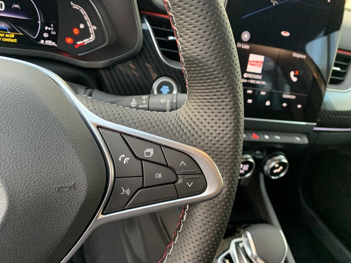 ABS, Aide au Freinage d'Urgence (AFU)Airbag frontaux conducteur et passager, désactivable côté passagerAirbags latéraux AV / ARAlerte de franchissement de ligneAnimation R.S. line rouge sur le volant et la planche de bord, surpiqûres rouges sur les panneaux de porte, les sièges et l’accoudoir centralBadge spécifique R.S. line sur l’enjoliveur d’aileBanquette arrière rabattable 1/3-2/3BluetoothCaméra de reculCapteurs de pluie et de luminositéCarte Renault, accès et démarrage « mains-libres »Chargeur de smartphone par inductionClimatisation automatiqueContrôle de trajectoire ESPDétecteur d'angle mortDétection d’obstacle latéraleEasy Link, système multimédia connecté avec écran tactile 9,3” vertical, compatible Android Auto et Apple CarPlayEasy Park AssistFeux de jour LED C-ShapeFrein de parking électrique avec fonction Auto-HoldFreinage actif d'urgence avec détection des piétons et cyclistesJantes alliage 18” R.S. line Silverstone, métalliques foncées et diamantées noires avec accent rougeLève-vitres avant et arrière électriquesLimiteur de vitessePédalier en aluminiumProjecteurs avant Full Led Pure VisionRégulateur de vitesse adaptatifRétroviseurs extérieurs à réglages électriques, dégivrants et rabattables automatiquementRenault Multi-SenseServices de navigation connectée : recherche d’adresses Google, infos trafic TomTom Live, météo, prix des carburants et zones de vigilanceSièges avant chauffantsSièges spécifiques R.S. line cuir - suédineSystème d'aide au parking avant et arrièreTableau de bord avec écran numérique et personnalisable 10,2”Traitement sonore Arkamys Classic avec 6 haut-parleursVéhicule connecté 4G avec pack de données inclus pendant 3 ansVitres et lunette arrière surteintéesVolant chauffantVolant réglable en hauteur et profondeurVolant sport en cuir perforé avec surpiqûres et logo Renault Sport
