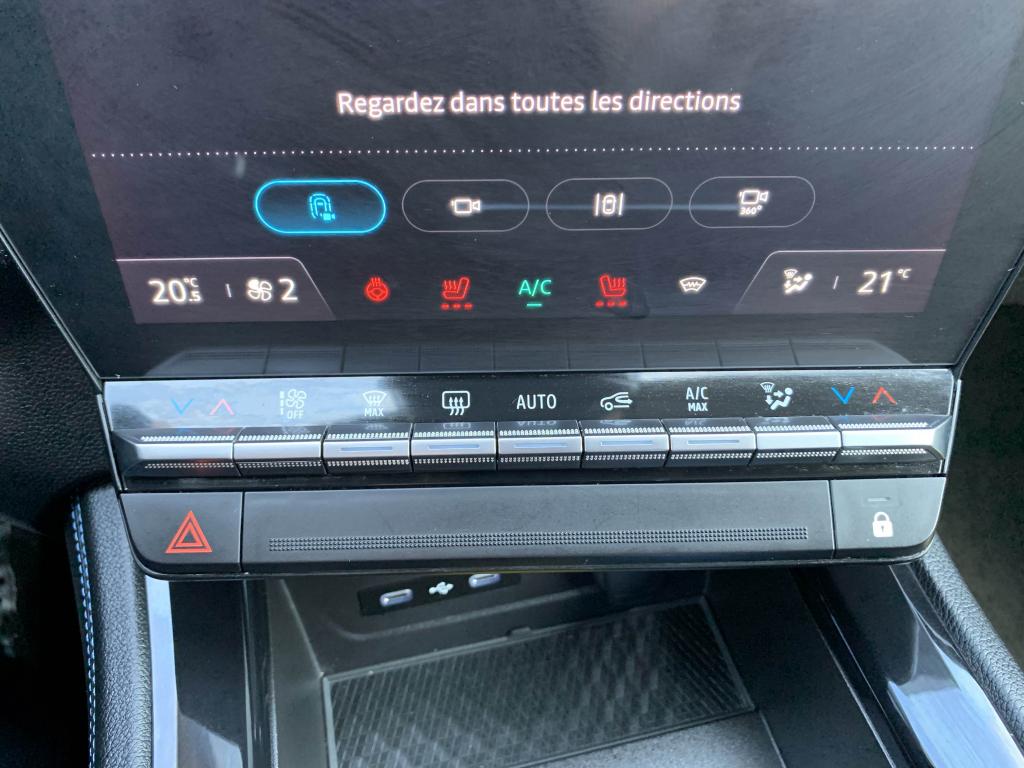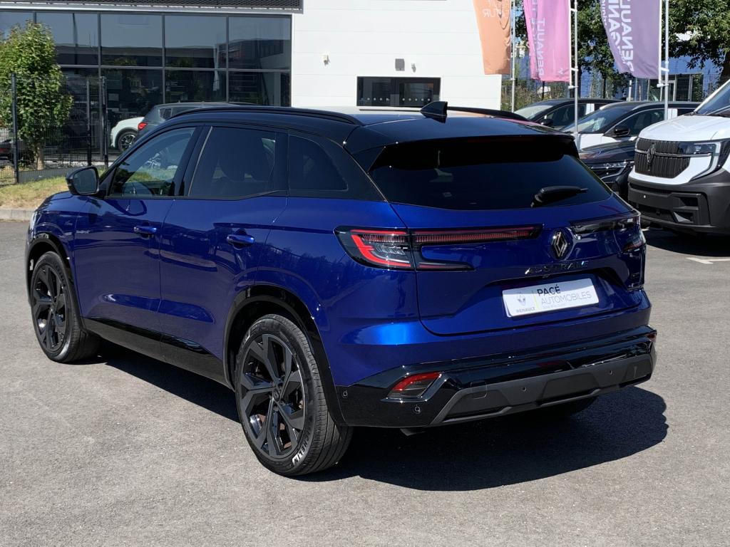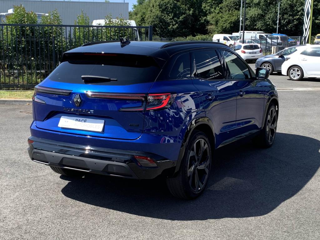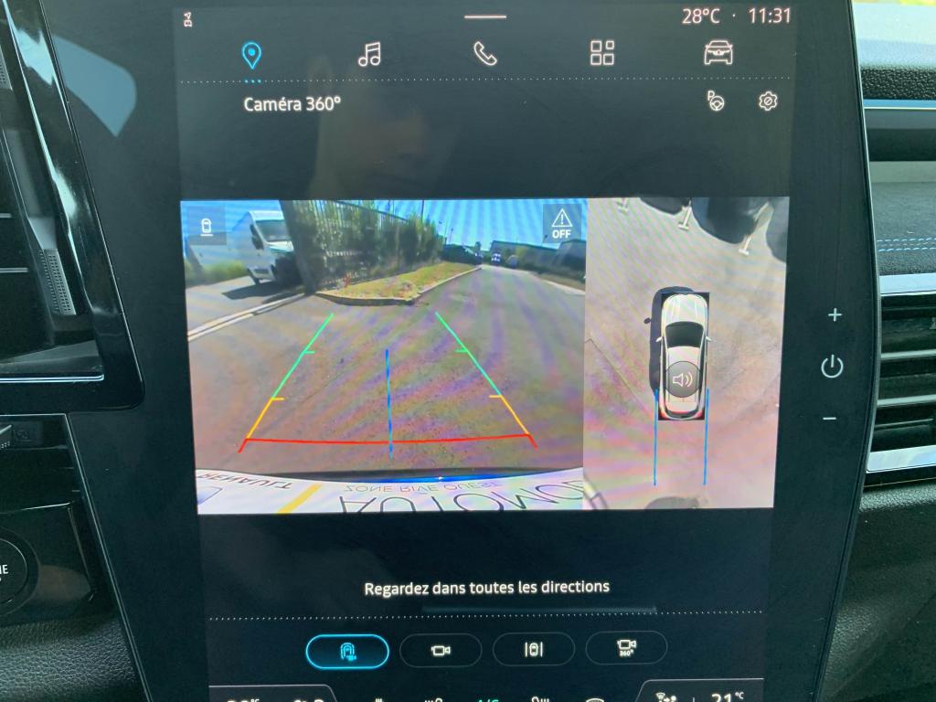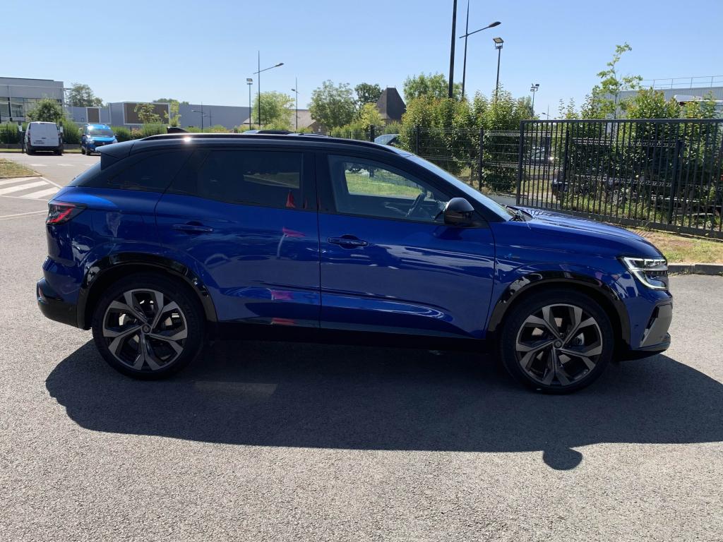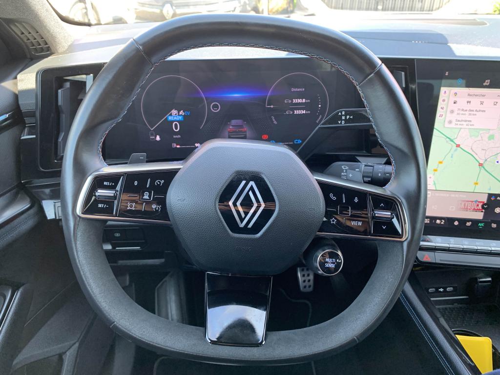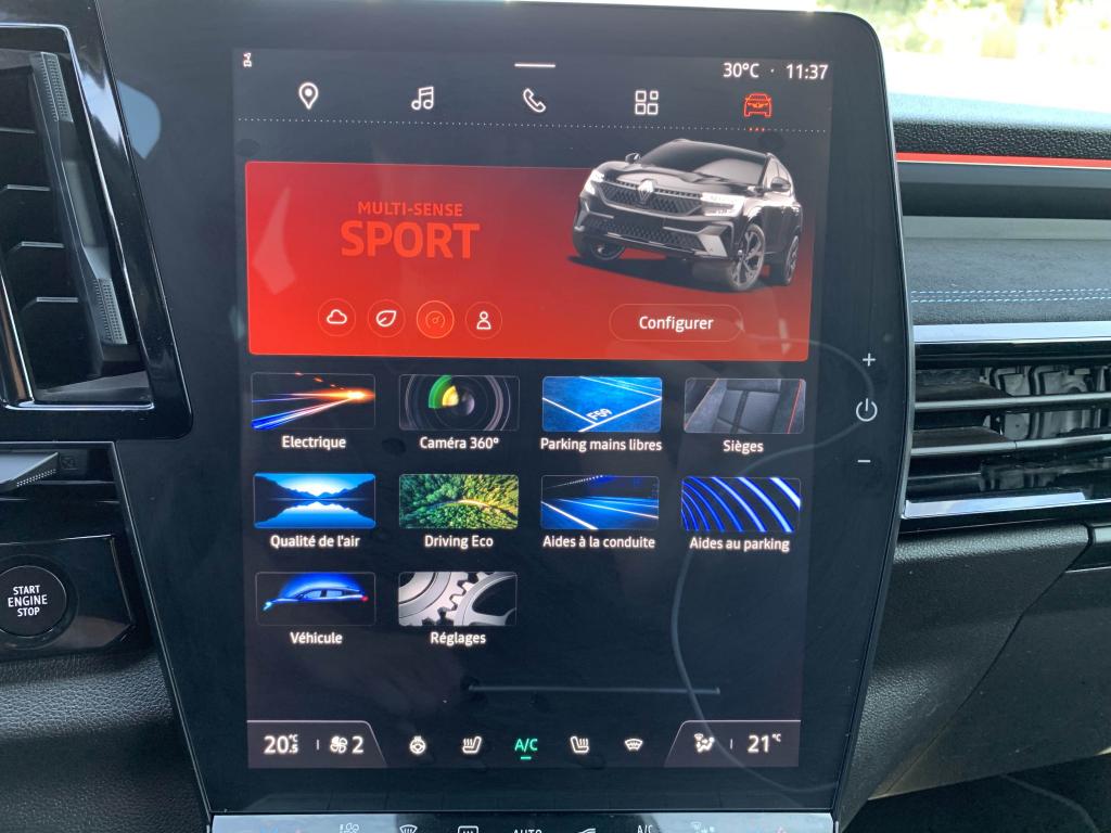 Active driver assist : assistant de conduite avec contrôle longitudinal et latéral du véhiculeAide au démarrage en côteAide au maintien dans la voieAide au parking avant et latéralAide au stationnement arrièreAlerte de changement de voie intempestifAlerte de franchissement de ligneAlerte distance de sécuritéAllumage automatique des essuie-glacesAntenne de type requin noir étoiléBanquette arrière coulissante 1/3-2/3 avec accoudoir centralBarres de toit longitudinales noires satinéesCaméra de reculCarte Renault, accès et démarrage « mains-libres »Chargeur de smartphone par inductionClimatisation automatique bi-zoneDécors de planche de bord et panneaux de portes AlcantaraEclairage intelligent (commutation automatique feux de croisement/feux de route)Feux LED adaptive vision (avec fonction antibrouillard intégrée)Frein à main automatiqueFreinage d’urgence automatique urbain/péri-urbain avec détection piétons et cyclistesHayon motorisé avec ouverture mains-libresJantes alliage 20" daytona diamantées noirLimiteur de vitesseLogo avant et arrière ice blackOpen R Link 12": système multimédia avec google intégré incluant pack navigation (Google Mpas et Google Assistant) pendant 5 ans et pack infotainment (Google Play) avec 3 GBPédalier en aluminiumPack Advanced Driving AssistPack City PremiumPack Comfort PremiumPack SafetyRéplication smartphone compatible Android Auto & Apple CarPlayRétroviseur intérieur électrochrome sans contourRétroviseurs rabattables électriquementRenault MULTI-SENSE (choix des modes de conduite)Sellerie Mixte tissu et Alcantra avec surpiqûres bleuesSiège passager électrique à mémoiresSystème d'appel d'urgenceSystème de surveillance de la vigilance du conducteurTableau de bord open R 12,3"Traitement sonore Arkamys Auditorium avec 6 haut-parleursVitres teintées arrièresVolant gainé cuirVolant spécifique avec insert Alcantara